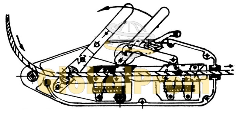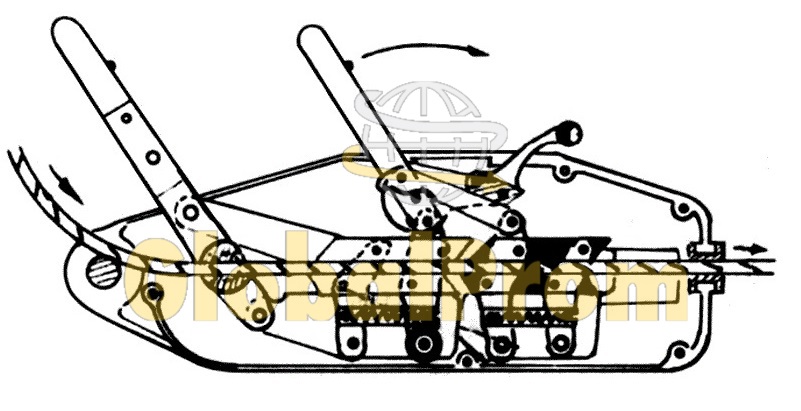 Рис. 5-А. Схема работы лебедки. Воздействие на передний рычаг