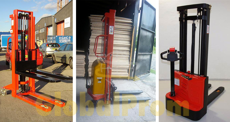 Как выглядит штабелер можно посмотреть на фото ниже (слева направо: ручной гидравлический штабелер, штабелер с электрическим подъемом и штабелер самоходный):