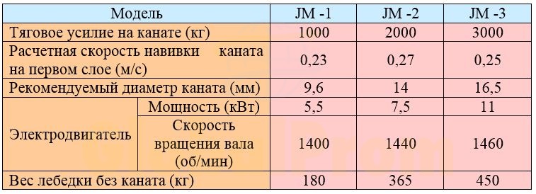 Характеристика моделей электрической лебедки