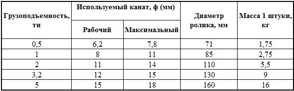 До складу блоку входить обертається шків з підшипником, захватний гак. Для того, щоб можна було швидко встановлювати канат в такому блоці використовується відкидна щока.
