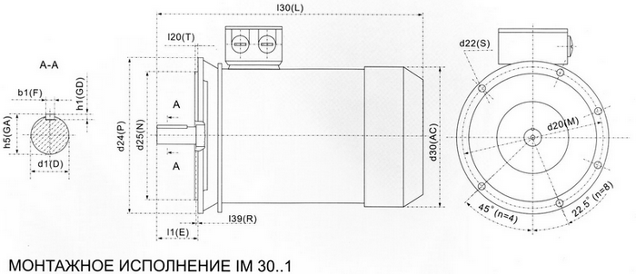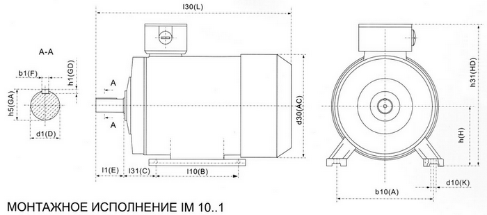Габаритные, установочные и присоединительные размеры электродвигателей:
