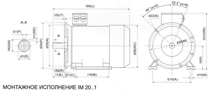 Схемы габаритных размеров при различных монтажных исполнениях электродвигателя: