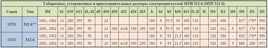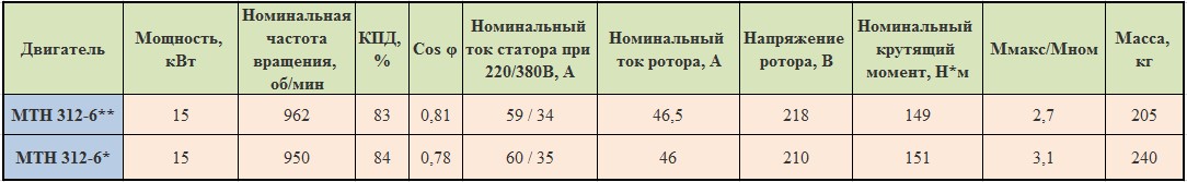 Технические характеристики электродвигателей МТН312-6 (MTF312-6)