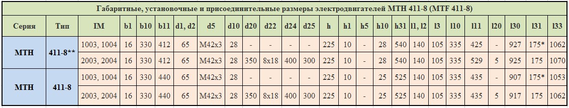 Технические характеристики электродвигателей МТН411-8 (MTF411-8)