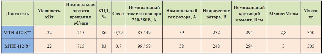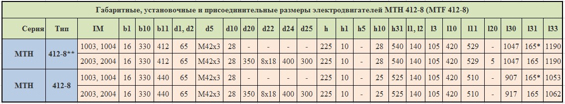 Технические характеристики электродвигателей МТН412-8 (MTF412-8)