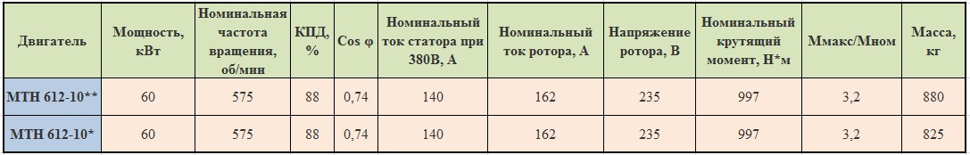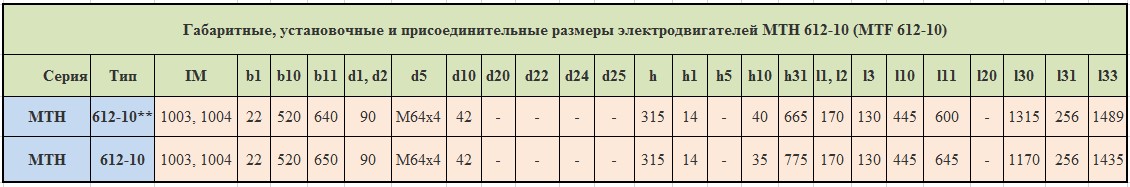 Технические характеристики электродвигателей МТН612-10 (MTF612-10)
