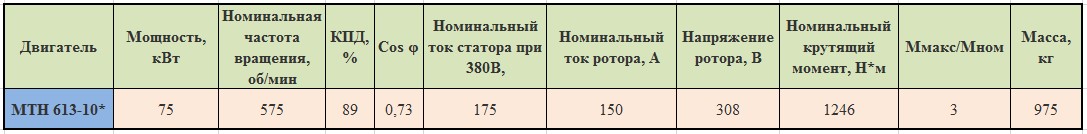 Технические характеристики электродвигателей МТН613-10 (MTF613-10)