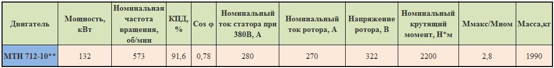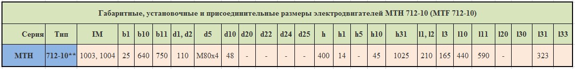Технические характеристики электродвигателей МТН712-10 (MTF712-10)