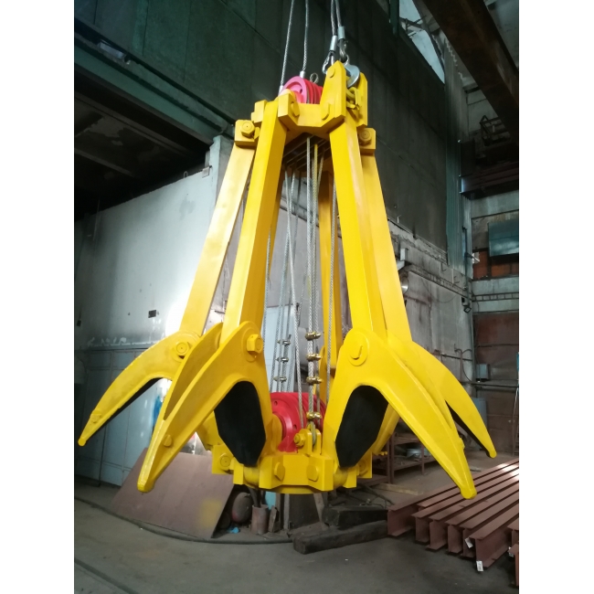 Грейфер багатощелепний чотириканатний или багатощелепний ковш – являє собою вид вантажозахоплень, що застосовується для підйому та переміщення таких вантажів, як металобрухт, поковка, брикети, металева стружка.
