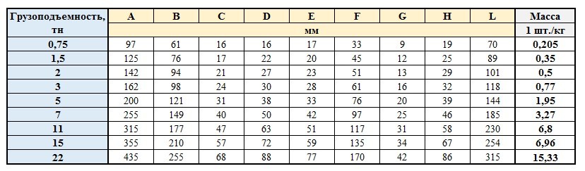 Технічні характеристики транспортного крюка з вушком: