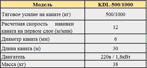 Лебідка KDL може підіймати вантаж від 300 кг до 1000 кг, вантажопідйомність залежить від моделі пристрою.