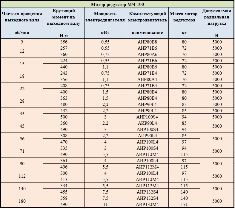 Черв'ячний мотор-редуктор типу МЧ-100 призначений для передачі обертального моменту механізмам, що використовуються в загальномашинобудівному виробництві. Дану серію редукторів відрізняють високі показники якості та надійність елементів, які використовуються в конструкції агрегату.