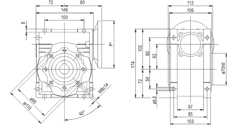 Постачання редуктора у зборі з двигуном або тільки редукторної частини з посадковими розмірами валів на індивідуальне замовлення