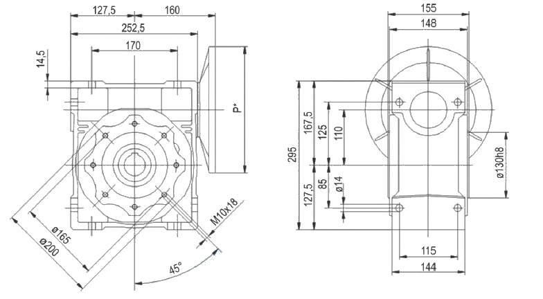 Постачання редуктора у зборі з двигуном або тільки редукторної частини з посадковими розмірами валів на індивідуальне замовлення
