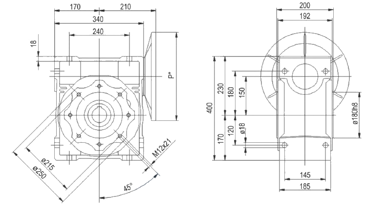 Постачання редуктора у зборі з двигуном або тільки редукторної частини з посадковими розмірами валів на індивідуальне замовлення