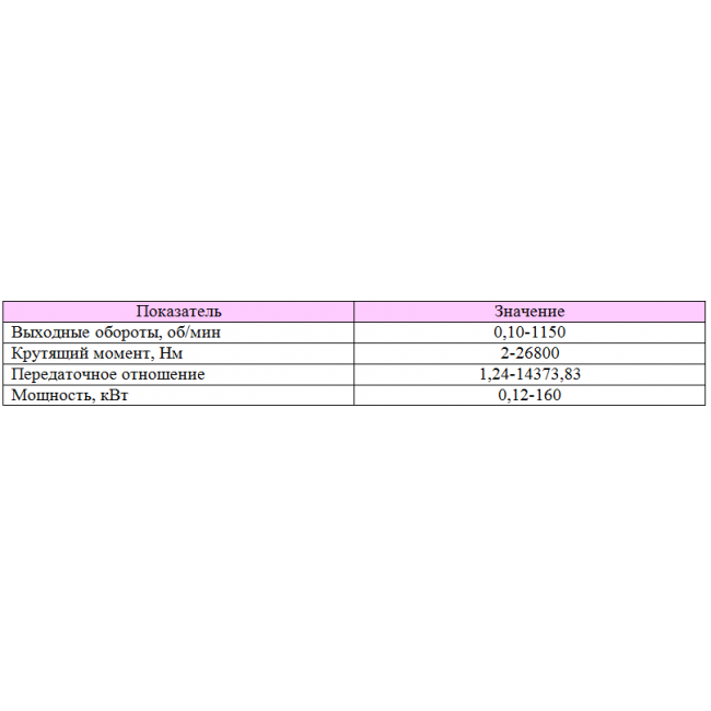 Мотор-редуктор має крутний момент до 26800 Нм.Передавальне відношення може лежати в межах від 1,24 до 14373,83.