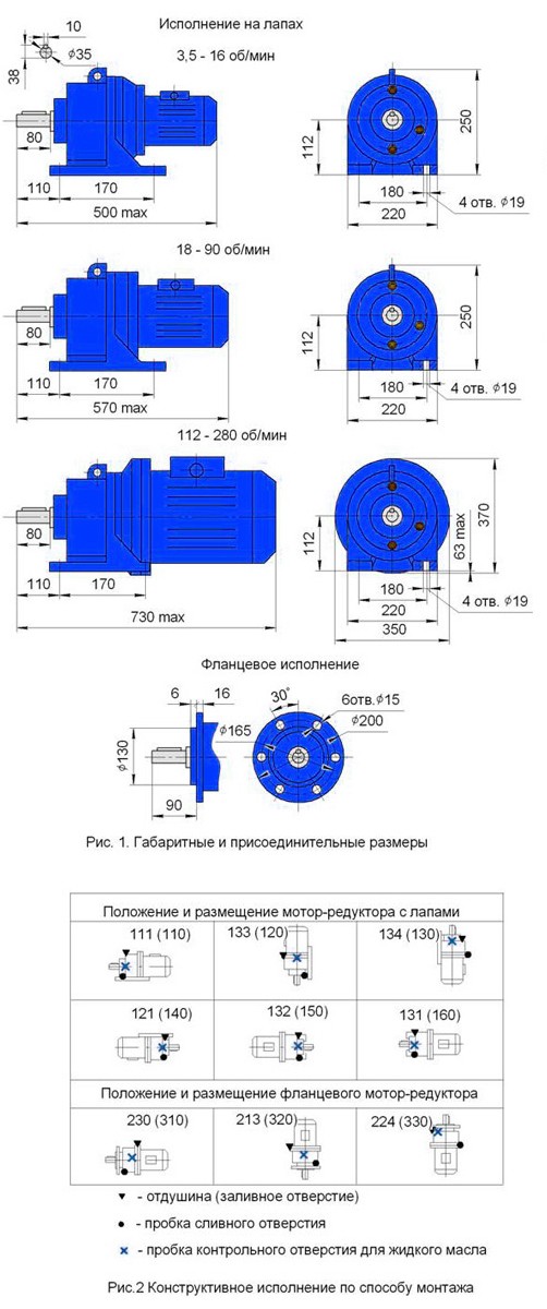- Редуктор-мотор допустимо експлуатувати в горизонтальному або ж вертикальному стані з невеликим вмістом частинок неагресивного типу і пилу.