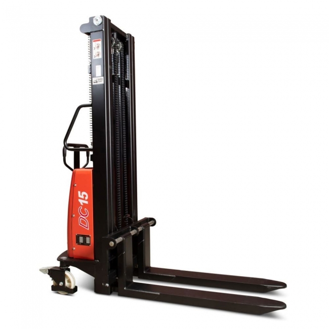 У напівелектричних штабелерах одночасно поєднується як ручний тип транспортування, так і електропривод вил. Їх можна використовувати в тих місцях, де не зможе працювати повноцінний навантажувач – стандартних дверних отворів, між невеликими стелажами та для маніпуляцій з транспортування у вузьких проходах
