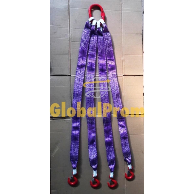 Строп текстильний 4СТ або як його називають «павук» - це вантажопідйомний виріб, який застосовується в промислових, будівельних і монтажних роботах для підйому і переміщення різних видів вантажів. чотиригілкові стропи складаються зі спеціального міцної ланки, до якого прикріплені чотири стрічкових стропи на кінцях яких знаходиться гак або інший спеціалізований захват.