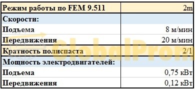 Ширина двутавра, по якому рухається візок, повинна лежати в межах від 90 до 300 міліметрів. Додатково може бути комплектуватися обмежувачем вантажопідйомності, другим гальмом підіймального механізму і радіоуправлінням.