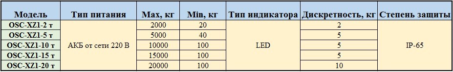 Технические параметры весов типа OCS-XZ1: