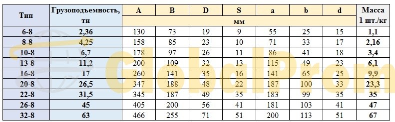 - Тип ланки - 6-8, 8-8, 10-8, 13-8, 16-8, 18-8, 20-8, 22-8, 26-8, 32-8;